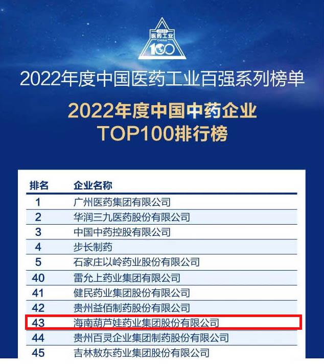 w66旗舰厅药业集团连续4年荣登“中国中药企业TOP100排行榜”,排名上升至第43位